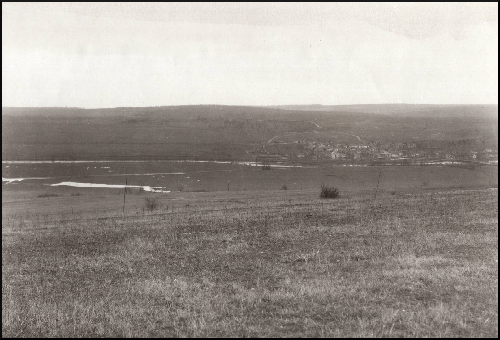 Am frühen Morgen begab ich mich mit zwei Offizieren in die Kampfstellung. Ich hatte sie seit drei Tagen nicht gesehen und erkannte sie kaum wieder. Im Dorf Forges die Strasse voller Trichter, zahlreich zur Seite geräumte Munitionsfahrzeuge, Pferdeleichen und Lastkraftwagen. Zwei in Forges ständig tätige tatkräftige Offiziere mussten jede kurze Feuerpause ausnutzen, um die Munitionswagen einzeln im Galopp durchfahren zu lassen. Heute war es noch zeitweilig möglich, den im Dorf und hart nördlich des Grundes stehenden Batterien Munition mit Pferdekraft zuzuführen. Im Forges-Bach-Grunde und in der Nähe der Tunnel und der Regimentsgefechtsstände fand ich Trichterfelder, die nur jenen gleichkamen, welche ich im August 1915 nach dem Durchbruch durch die Forts von Kowno (Anm. heute Kaunas) als Auswirkung unserer 42cm Geschütze gesehen hatte. Die Forges-Bach-Brücken waren nur zu Fuss über die Trümmer der Brücken kriechend und kletternd zu passieren. Die Pioniere mussten sich darauf beschränken, den Fussgängerverkehr sicherzustellen. Der Weg zum nächsten Tunneleingang führte über ein mit Leichen bedecktes Trümmerfeld. Auch die Gefechtsstände der Regimenter 20 und 35 waren grösstenteils zerstört. Der zur Zeit unter starkem Feuer liegende Forges-Bach-Grund und alle tiefer liegende Geländeteile waren mit Gasschwaden bedeckt.
